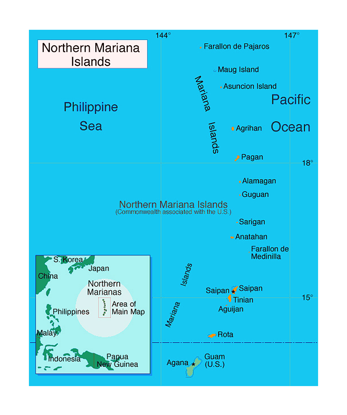 Северные Марианские острова - детальная политическая карта. Детальная политическая карта Северных Марианских островов.