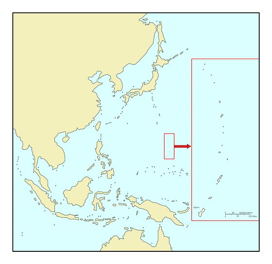 Марианские острова - большая карта расположения. Где находятся Марианские острова на карте. Большая карта расположения Марианских островов.