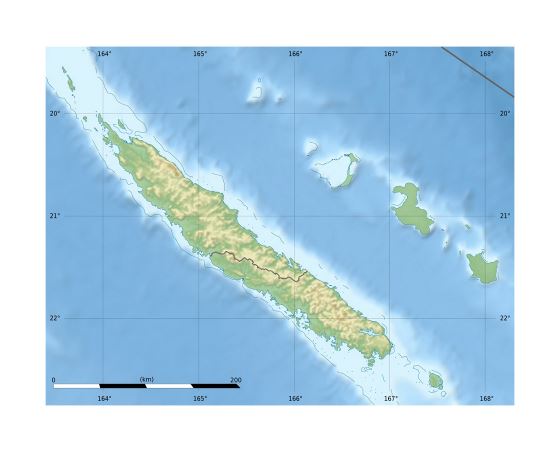 Новая Каледония - детальная карта рельефа. Детальная карта рельефа Новой Каледонии.