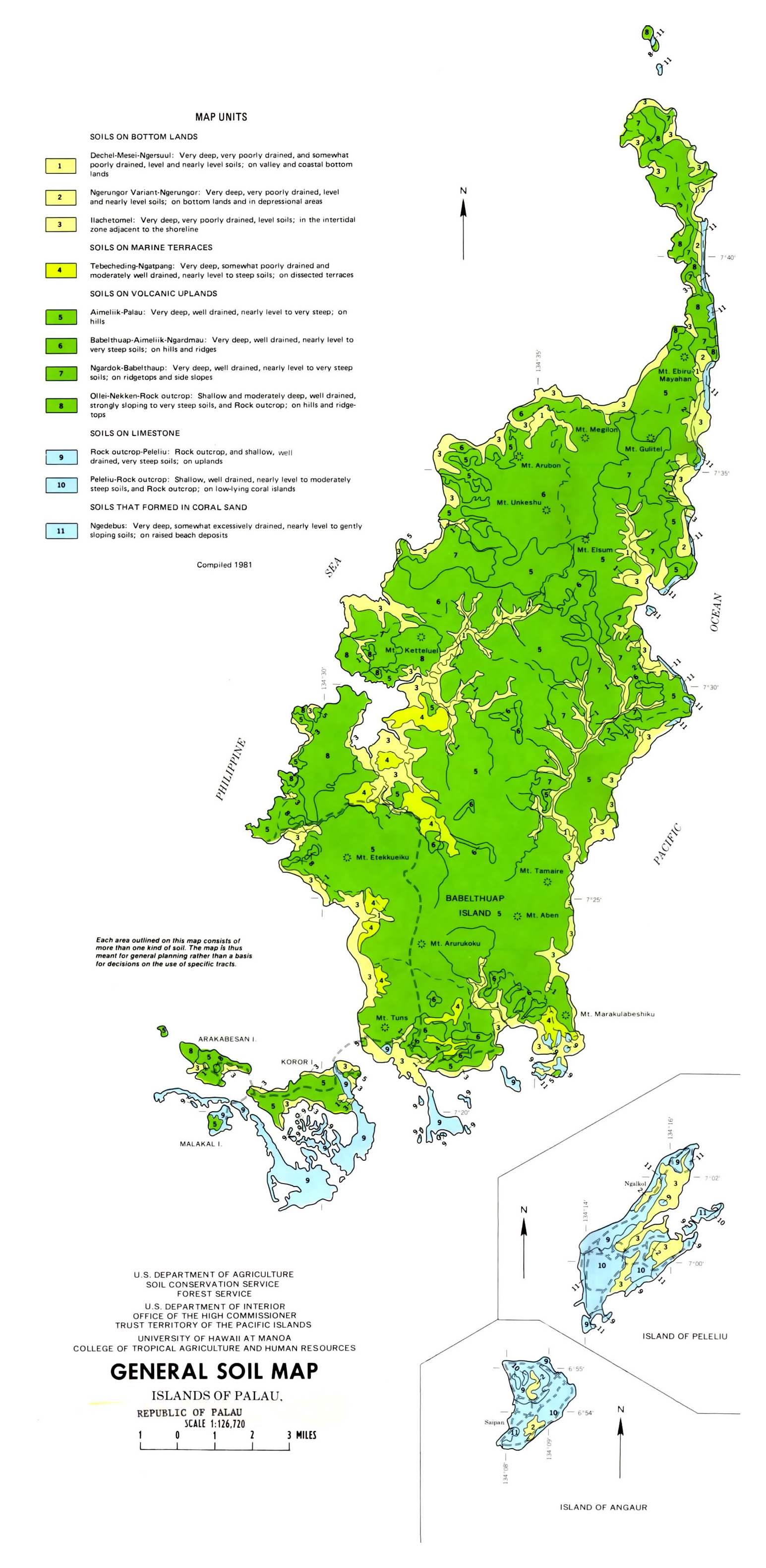 Палау - большая подробная генеральная почвенная карта - 1983. Большая подробная генеральная почвенная карта Палау - 1983.
