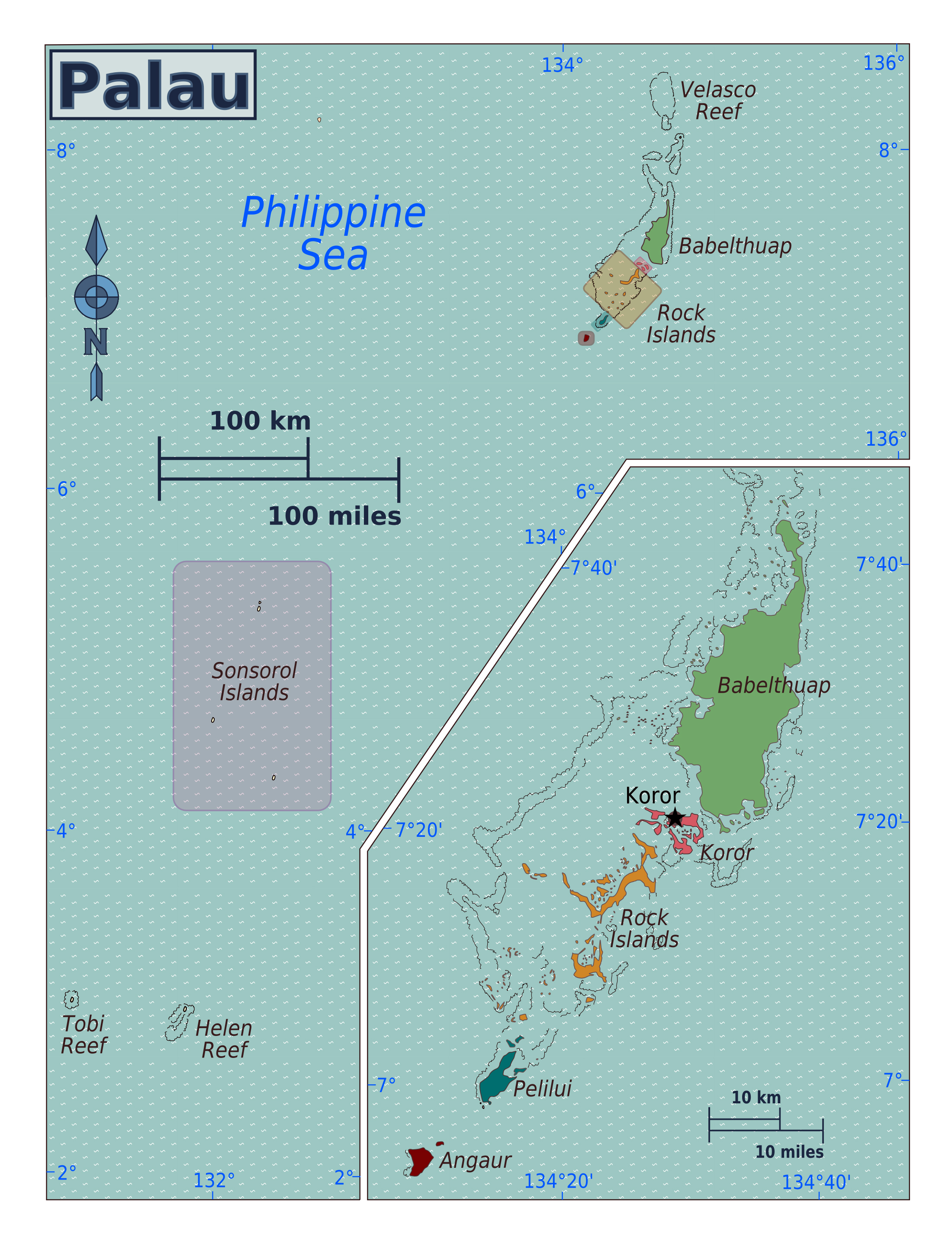 Палау - большая детальная карта регионов. Большая детальная карта регионов Палау.