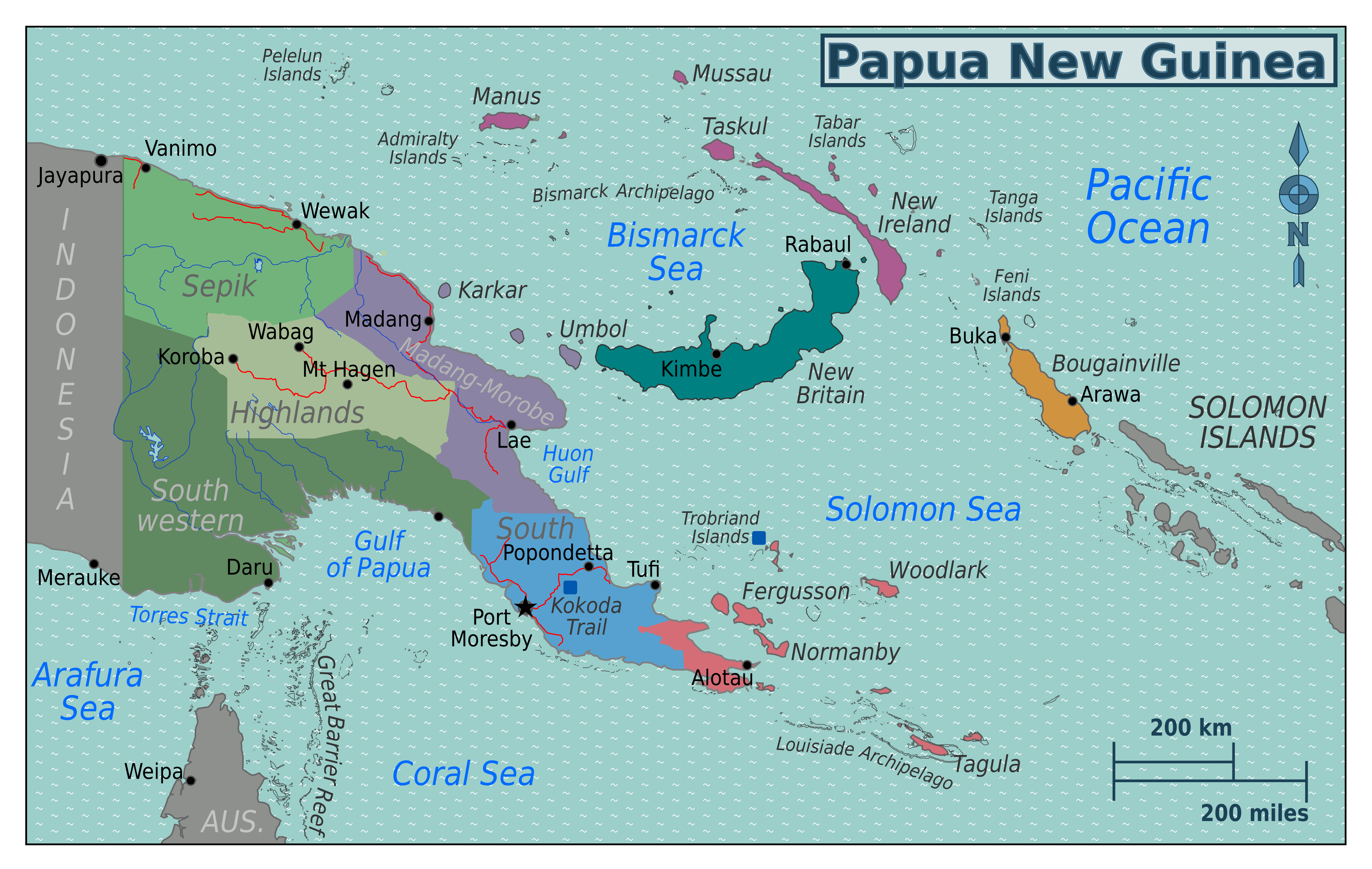 Папуа-Новая Гвинея - большая детальная карта регионов. Большая детальная карта регионов Папуа-Новой Гвинеи.