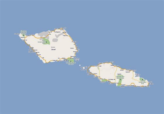 Самоа - детальная карта дорог с городами. Детальная карта дорог Самоа с городами.