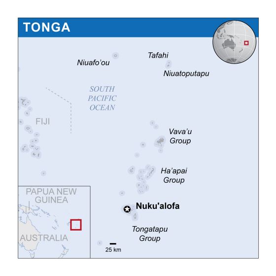 Тонга - детальная политическая карта. Детальная политическая карта Тонга.