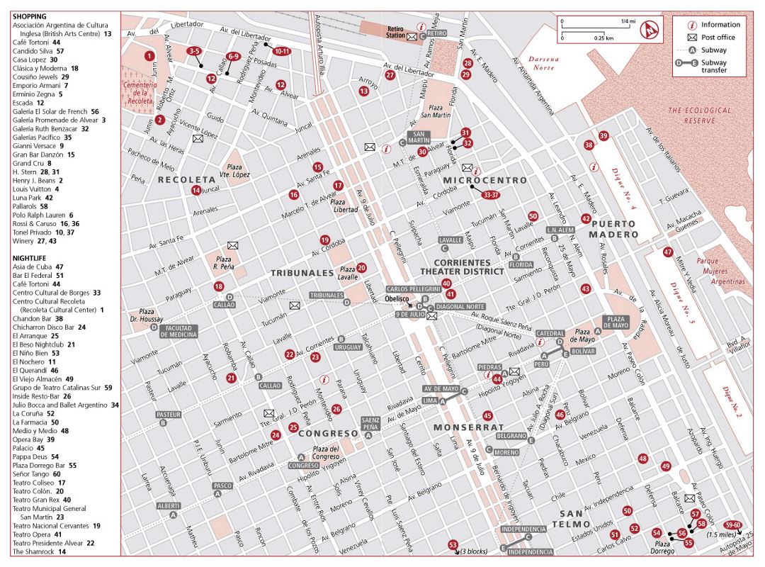 Город Буэнос-Айрес - детальная карта магазинов и ночной жизни. Карта магазинов и ночной жизни города Буэнос-Айреса.
