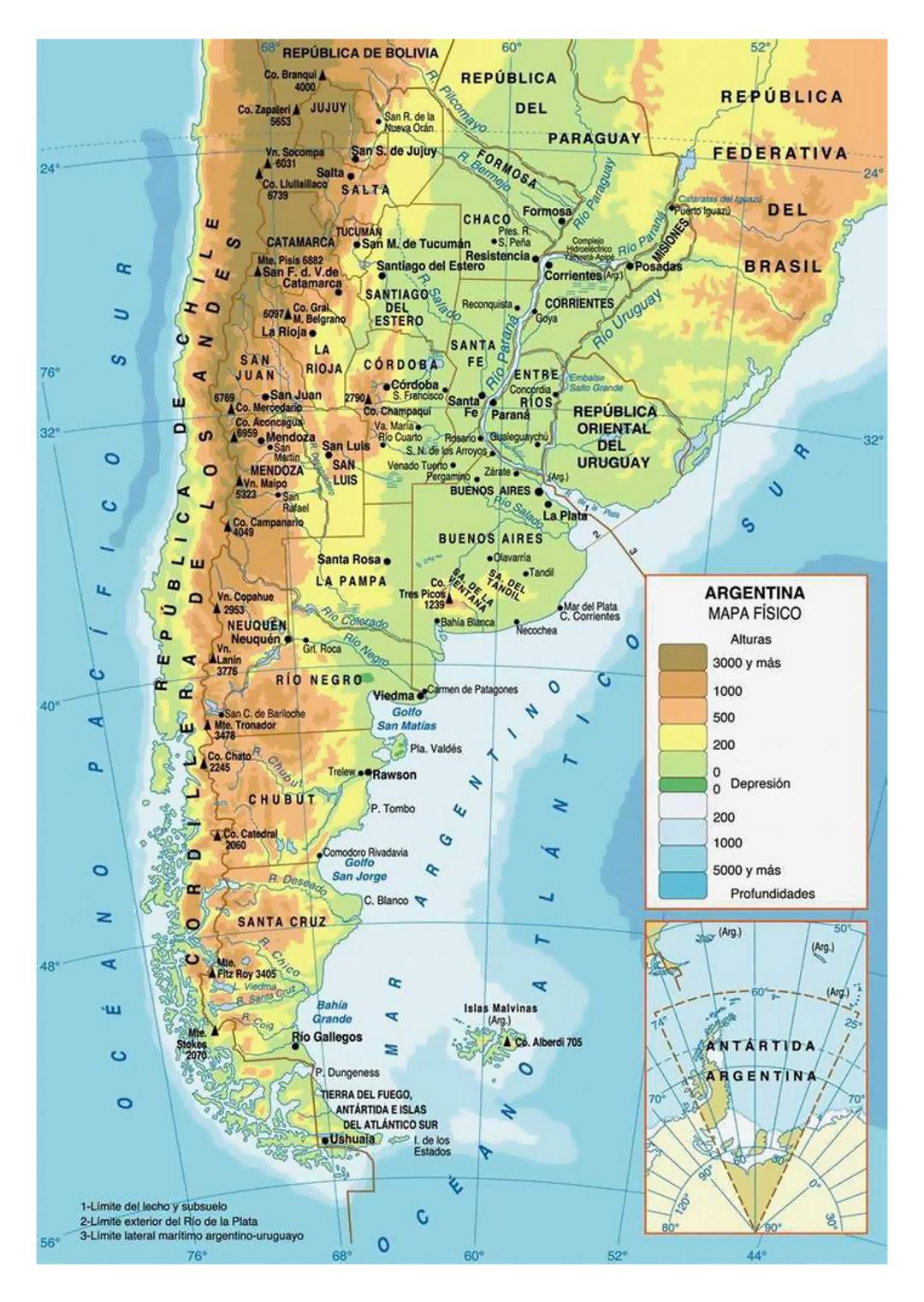 Аргентина - физическая карта с городами. Физическая карта Аргентины с городами.