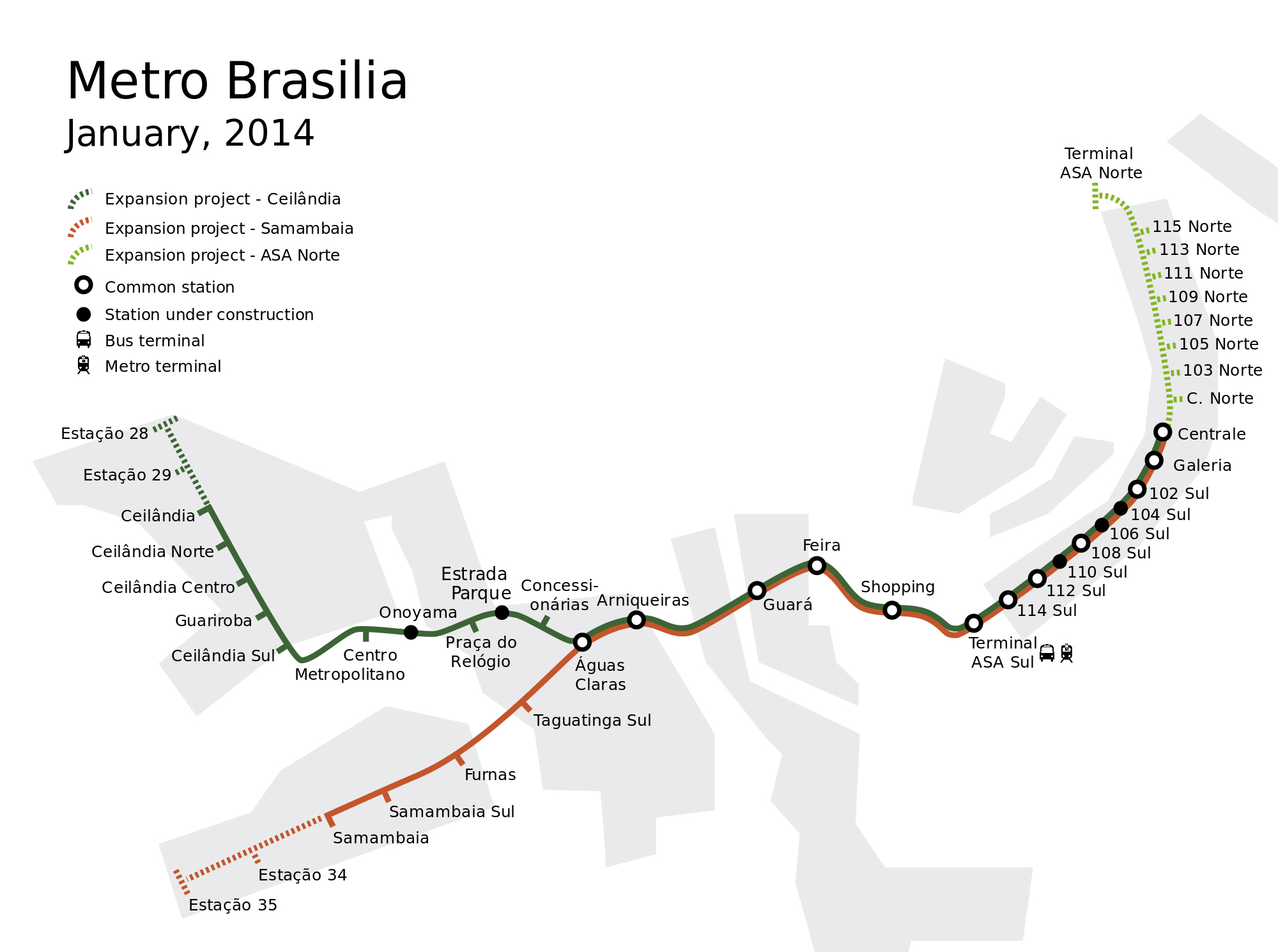 Бразилия - большая детальная карта метро. Большая детальная карта метро Бразилии.