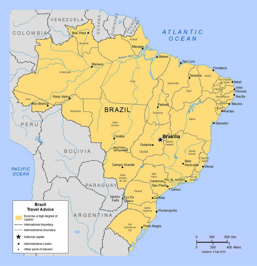 Бразилия - политическая и административная карта с крупными городами. Политическая и административная карта Бразилии с крупными городами.