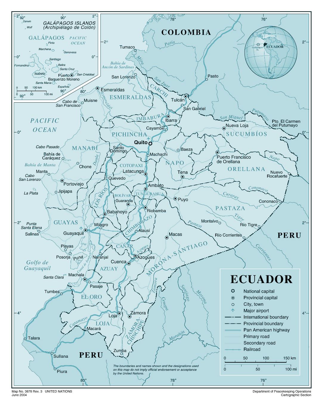 Эквадор - большая детальная политическая и административная карта. Большая детальная политическая и административная карта Эквадора.