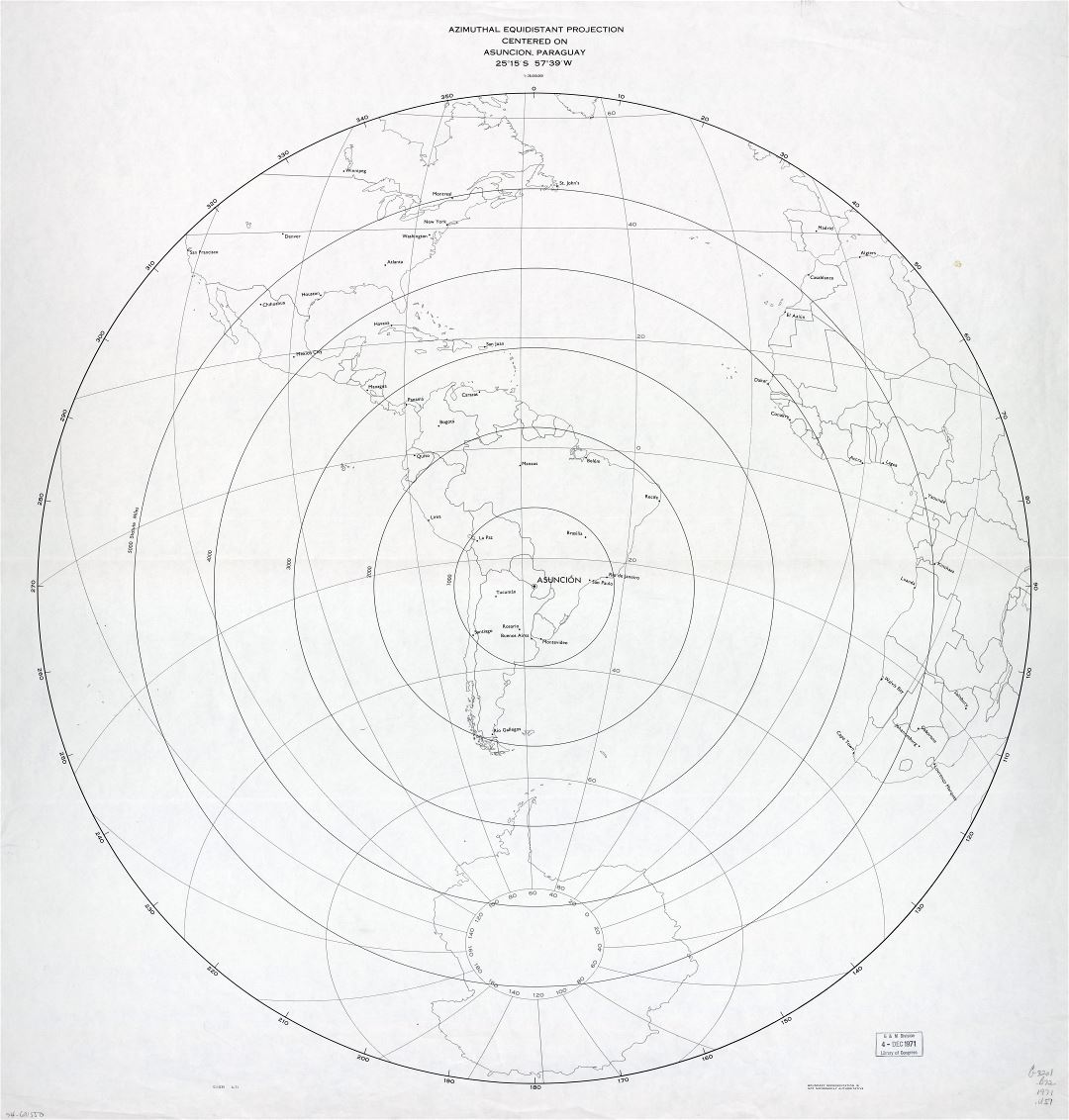 Азимутальная эквидистантная проекция с центром в Асунсьоне, Парагвай - крупномасштабная детальная карта - 1971. Азимутальная эквидистантная проекционная карта - с центром в Асунсьоне, Парагвай - 1971.