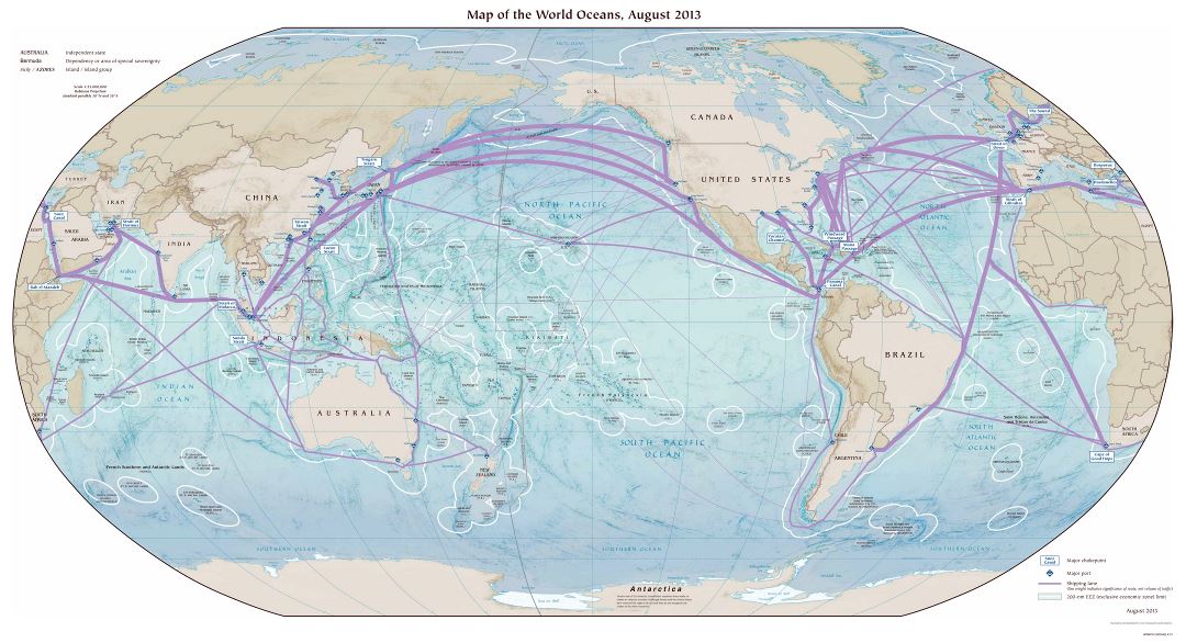 Большая подробная карта Мирового океана - 2013. Карта мирового океана.